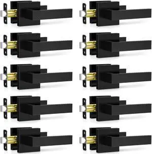 Plustool 10 Pack Matte Black Door Handles Interior, Passage Door Knobs Closet Door Levers for Hallway, Heavy Duty Square Doorknob Non-Locking Handlesets for Left & Right Sided Doors
