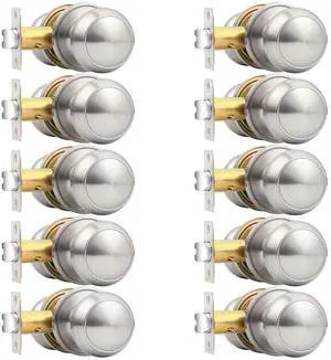Probrico Interior Door Knobs for Hallway, Flat Ball Closet Door Knob Brushed Nickel Finish, 10Pack Passage Door Knobs Brushed Nickel Door Knob