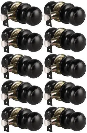 KNOBWELL 10 Pack Modern Door Knob Passage Door Knob, Black Closet Door Knobs, Non Locking Interior Door Knobs Round Ball Door Handle Lockset, Matte Black Keyless Doorknob for Hallway