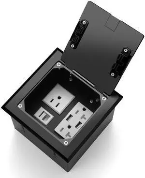 Recessed Floor Outlet Box 20 Amp Deep Floor Electrical Outlet Tamper Resistant (TR, Black)