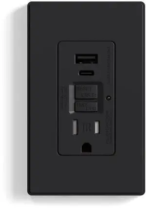 Outlet with USB Ports, 15 Amp Self-Test GFCI Combination with USB Ports, 24W Max Total Output, Tamper Resistant GFCI USB Outlet with Wall Plate, UL Listed, Matte Black, 1 Pack