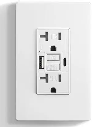 20 Amp GFCI Outlet with USB-C & USB-A Ports, Self-Test GFCI Electrical Outlet Combination with USB, Tamper-Resistant GFCI Outlet, Screwless Wall Plate Included, ETL Listed, White,1-Pack