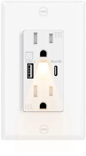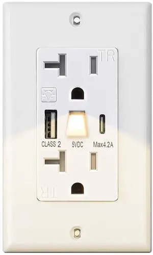20 Amp Outlet with Light and USB, Electrical Wall Outlet with Type A and Type C USB Charging Ports for iPhone 15 Series & More,Tamper-Resistant Outlet Wall Plate Included,White (1, White)