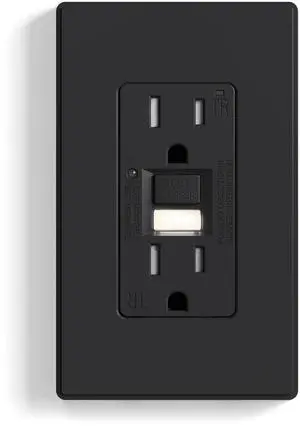 GFCI Outlet w/Nightlight, 15 Amp Self-Test GFI Electrical Outlet, Thinner Design, Tamper Resistant GFCI Receptacle, Ground Fault Receptacle w/Wall Plate, UL Listed, Matte Black, 1 Pack
