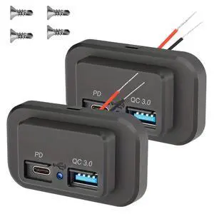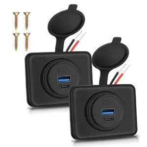 2PCS 12V/24V RV USB Outlet with Cap, PD3.0 18W Type-C & QC3.0 18W USB-A Port Panel Mount Surface Automotive Car USB Socket Quick Charger Power Adapter for RV Marine Boat Bus ATV Motorcycle Truck Golf