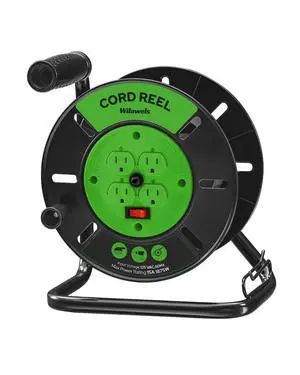 Extension Cord Storage Reel with 4-Grounded Outlets, 15A Circuit Breaker, Heavy Duty Open Cord Reel for 12/3,14/3,16/3 Gauge Power Cord, Hand Wind Retractable, ETL Listed, Green J95CR06