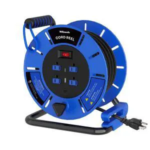 60ft Cord Reel, Retractable Extension Lead with Winding Handle, Safety Overload Circuit Breaker and Power Switch, 4X Grounded Outlets, 13amps, 14AWG Cable