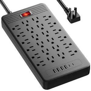 24 Outlets Surge Protector Power Strip - 5 Feet Flat Plug Extension Cord with 24 Widely Outlets and 4 USB Ports, 2 USB C Ports,Portable Outlet Extender, Wall Mountable for Home Office Dorm Room,Black
