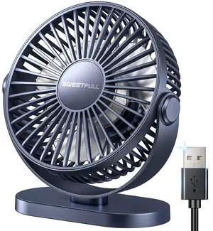 Desk Fan Quiet Small USB Fan 360° Rotation Portable Table Fan 2 Speed Mini Personal Fan Air Cooling Electric Fan for Home Office Bedroom Travel Camping, 4 inch Black