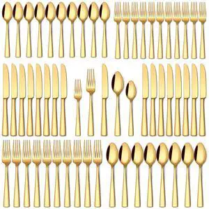 60 Pcs Gold Silverware Set, Food-Grade Stainless Steel Flatware Sets for 12 Mirror Polished Cutlery Utensil Sets Include Dinner Knives Spoons and Forks Set Dishwasher Safe for Home Restaurant