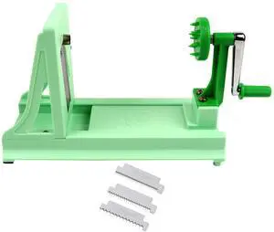 Vollum Japanese Turning Vegetable Spiralizer, Veggie Spiralizer For Fresh Zucchini, Squash, Butternut Squash with 1 Straight-Edged Blade and 3 Serrated Blades Multiple