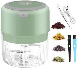 Electric Herb Grinder, 3.5 Inch Large Grinders for Grinding Dry Fresh Herbs and Spice with Clear Chamber, Portable USB Charge Herb Grinder, Including Clean Brush and Tweezers, Gift Box, Green