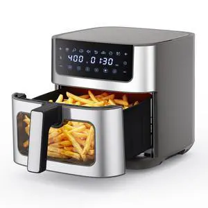 Air Fryer 6.34QT, Airfryer with Visible Window, 400 Fast Heating Air Fryers Oven with Nonstick and Dishwasher-Safe Basket, 8-in-1 Cooking Preset, TimerAuto-Off, Stainless Steel, Black