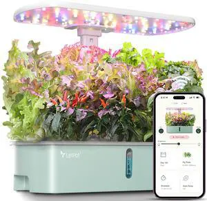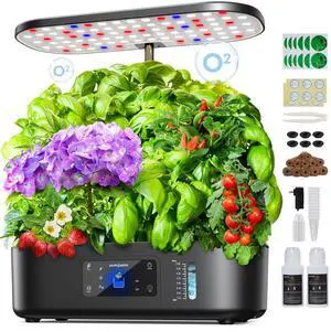 Hydroponics Growing System Kit Indoor Herb Garden with Grow Light 12 Pods, with LCD Touch Panel Hydroponic Planter, Planting Height Up to 17", Grower Harvest Fresh Veggie Lettuce, Black