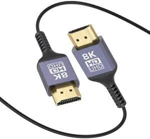 Thin HDMI Cable 6.6FT 8K Slim HDMI Cable, 48Gbps Ultra High Speed Flexible HDMI 2.1 Cord with 8K@60Hz, 4K@60Hz, Dynamic HDR, 3D for Laptop, HDTV, Monitor, Projector, PS5/PS4, Xbox