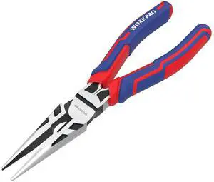 Premium 8 Needle Nose Pliers, Paper Clamp Precision, Heavy-Duty CRV Steel, Large Soft Grip with Wire Cutter, Long Nose Cutting Pliers, W031269