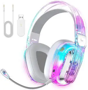 Wireless Gaming Headset for PS5, PS4, PC, Switch, Mac, 2.4GHz USB Over Ear Gaming Headphones with Crystal RGB Lights