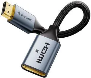 8K Short HDMI Extender Cable 0.6 FT Male to Female, HDMI Extension Cable Support 8K@60Hz, 4K@120Hz/144Hz, HDCP 2.2/2.3, Compatible with Roku TV Stick, HDTV, Game Console, Laptop, 1 Pack
