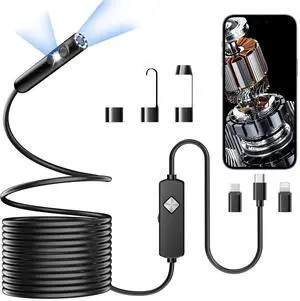 Endoscope with Light, 1920P HD Borescope with 8 Adjustable LED Lights, 16.4FT Semi-Rigid Snake Camera, IP67 Waterproof Inspection Tool for iPhone & Android - Dual Lens (Black)