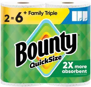 Paper Towels Quick Size, White, 2 Family Triple Rolls = 6+ Regular Rolls