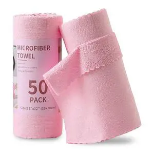 Microfiber Cleaning Cloth Roll, 50PK, Tear Away Reusable Paper Towels Pink, Commercial Shop Rags, Microfiber Towels for Cars, Lint Free Cleaning Rags for House, Kitchen, Garage Shop, 11.5"×11.5"