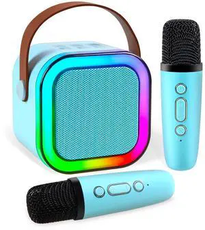 Mini Karaoke Machine,Portable Bluetooth Speaker with 2 Wireless Microphone for Kids Adults with Led Lights,Christmas Birthday Gifts for Girls Ages 4-12 Years Old Support USB/TF/AUX for Home Party,Blue