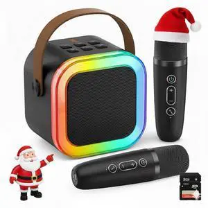 New 2026 KimLamPro Kids Karaoke Machine Mini Portable Karaoke Speaker with 1500mAh Battery, 2 Microphones, 5 Voice Effects, LED Lights & 8GB TF Card for Kids Ages 312 (Black)