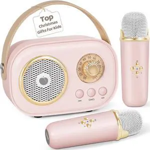 Mini Karaoke Machine for Kids, Toy for Girls Portable Bluetooth Speaker with 2 Wireless Microphones, Fashion Toy Gifts for Christmas Birthday, for 3 4 5 6 7 8+ Year Old Girls Gifts(Pink)