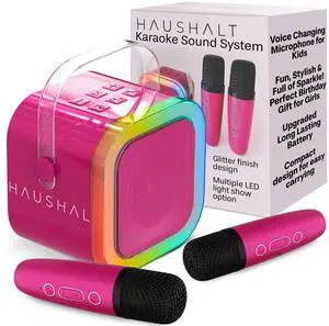 HAUSHALT Mini Karaoke Machine for Adults Kids Teen with 2 Wireless Microphones, Birthday Gift Girls 8-12, Toys for Ages 5-7, Small Portable Bluetooth Speaker, Mini Microphone, Teens Car Singing Mic