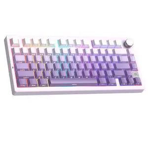 MageGee 75% Wireless Creamy Keyboard with Knob, Tri-Mode 2.4G/USB-C/BT RGB Backlit, Gasket Hot Swappable Custom Gaming Keyboard for Win/Mac/PC, Side Printed PBT Keycaps, Purple