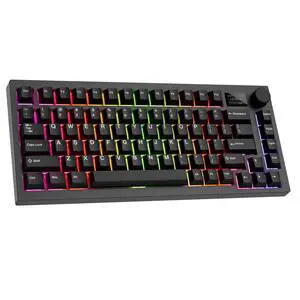 TECWARE Spectre 75 Mechanical Gaming Keyboard | Customizable LCD Screen Display & Knob | Tri-Mode Wireless Bluetooth 2.4GHz | Gasket Mount Hot Swappable | Black Candy Red Linear Switches