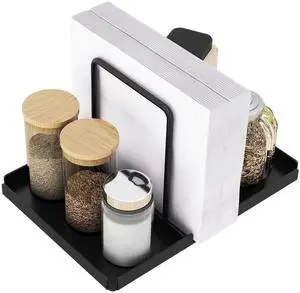 Napkin Holder for Table, Metal Napkin Holder with Salt and Pepper Shakers Caddy, Standing Paper Napkin Storage for Kitchen Dining Table Decor, Black