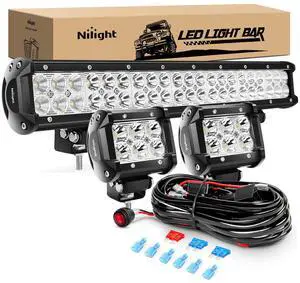 - ZH002 20Inch 126W Spot Flood Combo Off Road Led Light Bar 2PCS 18w 4Inch LED Pods With 16AWG Wiring Harness Kit-3 Lead For Tractor, 2 Years Warranty
