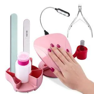 Manicure Supplies, Nail Stand Hand Rest for Nails with Multi Angle & Polish Trays, Manicure Set 3 Pieces & LED Lights, Foot Station Supply for Salon Home DIY, Christmas Gifts for Women (Pink)