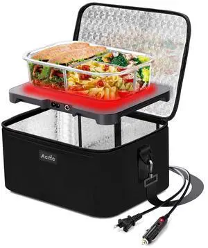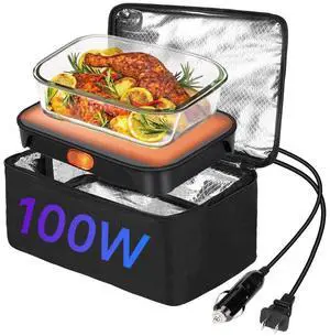 Portable Oven, Electric Lunch Box Food Heater - 12V/24V/110V 3-in-1 Car Food Warmer - Mini Personal Microwave Heated Lunch Box Warmer for Car, Truck, Travel, Office & Home Use - Black