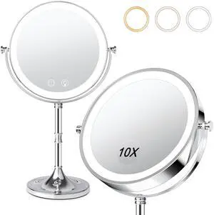 Makeup Mirror, Vanity Mirror with Lights, 2X/3X/10X Magnification, Touch Control, Trifold, Dual Power Supply, Gifts Mothers Day for Mom,Gifts for Women, Wife, Girls,Dorm Room Essentials- Brand: HUONUL