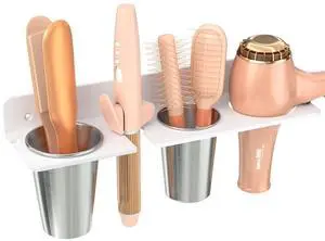 HIIMIEI Hair Tool Organizer Wall Mount, White Acrylic Hot Tool Holder with 2Cups, Bathroom Hair Styling Accessories Storage Organizer for Flat Iron, Blow Dryer, Curling Wand