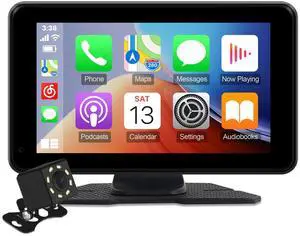 Portable Carplay Screen for Car, 7" HD Touchscreen for Car with Backup Camera/Mirror Link/Bluetooth/Voice Control/GPS/AUX/FM Satellite Radio for All Vehicles.