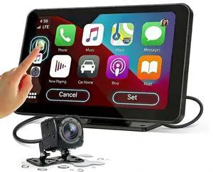 Carplay Screen for Car, 7" HD Portable Wireless Apple Carplay & Android Auto Touchscreen, with 1080P Backup Camera, Car Play Screen Tablet, GPS Navigation/Mirror Link/Bluetooth/FM/Voice Control