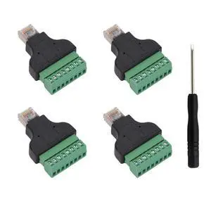 4PCS RJ45 Screw Terminal Adapter Block,RJ45 Ethernet Male to 8 Pin Connector for CCTV DVR Cat5 Cat6 Cat7