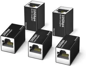 RJ45 Ethernet Coupler 10Gbps, 5 Pack Extender Adapter for Cat8 Cat7 Cat6 Cat5 Cat5e Ethernet Cable, 328ft Long Distance High Speed Connector, Female to Female Aluminum Alloy Black