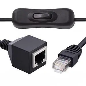 Cat6 Ethernet Patch Cable Switch On/Off RJ45 Male to Female High Speed Internet Network Cable LAN with Disconnect Switch, Black(1M/3.3Ft)