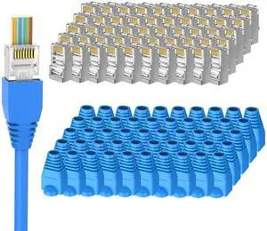50-Pack Cat 6 Shielded Pass Through RJ45 Connectors + 50Pack RJ45 Strain Relief Boots, 8P8C Modular Ethernet STP Network Cable Plug End for Cat6 Cat5e