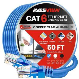CAT 6 Ethernet Cable 50 FT, Indoor High-Speed 10Gbps Snagless Long CAT6 50 FT Ethernet Cable for Internet, Router, Modem, Gaming, PlayStation, Xbox, POE Camera, (Blue, 50 Feet)