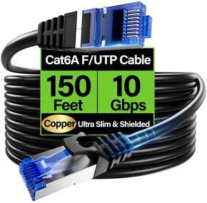 Cat6A Ethernet Cable Shielded 10Gbps 150 ft, Slim Shielded (F/UTP) Ethernet Cable Cat 6, Flexible 28AWG Bare Copper Cat6 Cable, Space-saving Cat 6a Network Cable for Server, Data Center, Black