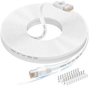 Cat 6 Ethernet Cable 50 ft, 10Gbps Support Cat8 Cat7 Network, Flat RJ45 LAN Patch Cable, High-Speed Wired Internet Cable for Router, Modem, Switch, Gaming Consoles, PC, Streaming Devices, White