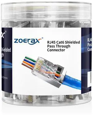 100-Pack RJ45 Cat6 Pass Through Connector Shielded RJ45 Modular Plugs for Solid or Stranded FTP/STP Ethernet Cable