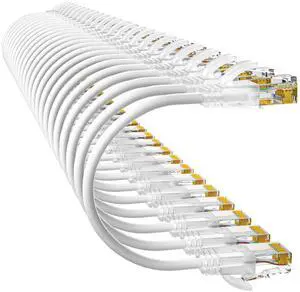 Cat 6 Ethernet Cable 50 ft,Flat Internet Network LAN Patch Cords Solid Cat6 High Speed Computer Wire with Clips - Snagless Rj45 Connectors for Modem,Router,PS4 Faster Than Cat5/Cat5e - 50ft White