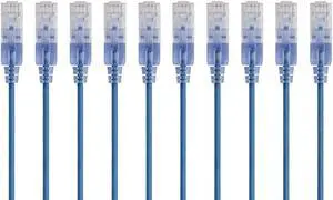 Cat6A 6in Blue 10-Pk Patch Cable UTP 30AWG 10G Pure Bare Copper Snagless RJ45 SlimRun Series Ethernet Cable
