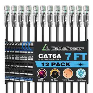 Patch Cables Cat6a 7ft (12 Pack) Slim, Cat6 Ethernet Patch Cable 10G Support, Snagless RJ45 Cat 6 Patch Cable for Patch Panel to Switch, Flexible Network Cable - 7 Feet Black